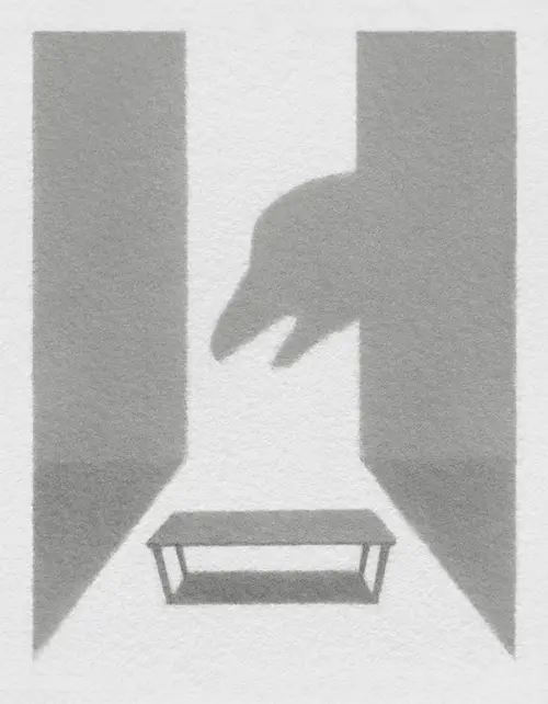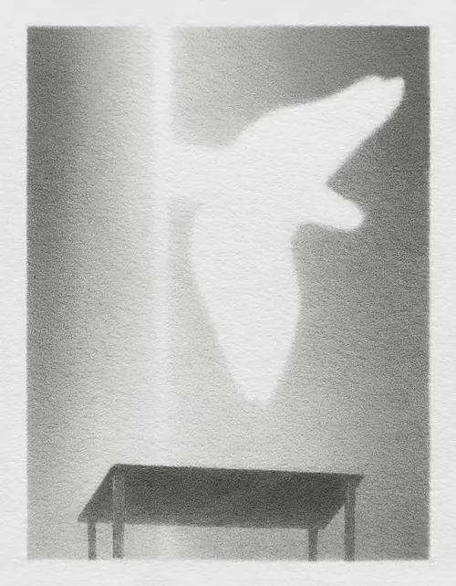 Inspired by how Poe's poem depicts the inner self as a closed space, and how the visitor to that room is expressed first as light, and then as the shadow that light casts.